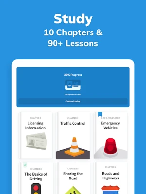 Keep track of your progress through the chapters and lessons. Keep track of your test scores and average time. Easily pick up where you left off with the Continue Studying shortcut.