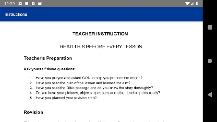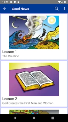 This app deals only with the lesson section of the Sunday School and each is planned to last about twenty minutes. The rest of the Sunday School time, composed of singing, prayer, Bible reading, quizzes and other activities, is left to the teachers to plan. We recommend that each lesson should end with a short prayer and song based on that week’s teaching. The lessons are aimed at a fairly wide age range of children from 7 to 12 years.